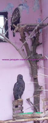 Di dalam sangkar itu terdapat burung-burung yang saat ini populasinya cukup langka seperti Elang berwarna hitam , Rajawali dan Jalak Bali.